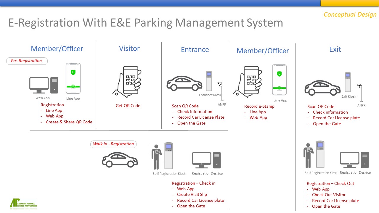 - ระบบลงทะเบียนล่วงหน้า Pre-Registration Online / Line Application เข้าพื้นที่ โดย QR Code/ ทะเบียนรถยนต์ สามารถปรับแต่งโปรแกรมได้ตามต้องการ